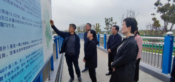 調(diào)研組一行實地調(diào)研了淠河總干渠渡槽、蜀山樞紐,聽取相關(guān)情況介紹,并召開了座談會,聽取市引江投資公司關(guān)于“百里畫廊規(guī)劃情況和江淮運(yùn)河文旅發(fā)展帶規(guī)劃編制情況”匯報。