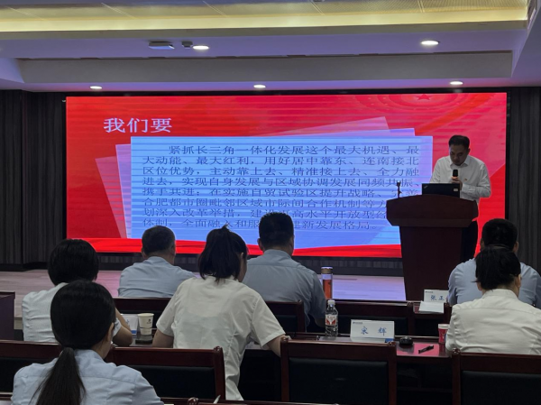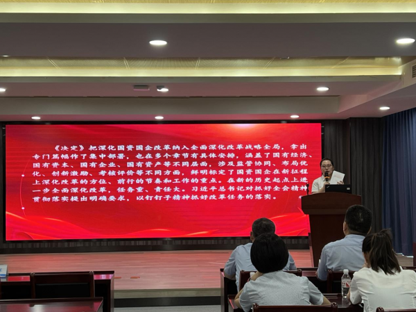 9月4日,為深入學習貫徹黨的二十屆三中全會精神,市引江投資公司黨委邀請市國資委宣講團來公司開展學習貫徹黨的二十屆三中全會精神宣講活動,公司黨委書記、董事長郭星攜領(lǐng)導班子成員及全體黨員員工參加活動。