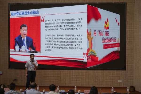 比賽現(xiàn)場(chǎng),公司第一黨支部張榮強(qiáng)、第二黨支部馬良分別以《用“兩山”理論 繪出美麗時(shí)代風(fēng)景》和《守正創(chuàng)新引江人 砥礪前行新時(shí)代》為題,圍繞黨的二十屆三中全會(huì)精神、習(xí)近平總書(shū)記“兩山”理論等內(nèi)容,從“小切口”引出“大主題”,用“小故事”講明“大道理”,展現(xiàn)了公司在服務(wù)保障引江濟(jì)淮工程建設(shè)中的責(zé)任與擔(dān)當(dāng);展現(xiàn)了引江投資人全力推進(jìn)江淮運(yùn)河沿線生態(tài)、生活、生產(chǎn)融合發(fā)展,積極踐行習(xí)近平生態(tài)文明思想的生動(dòng)實(shí)踐。為現(xiàn)場(chǎng)觀眾呈現(xiàn)出一場(chǎng)接地氣、有溫度、有深度的思政小課堂。