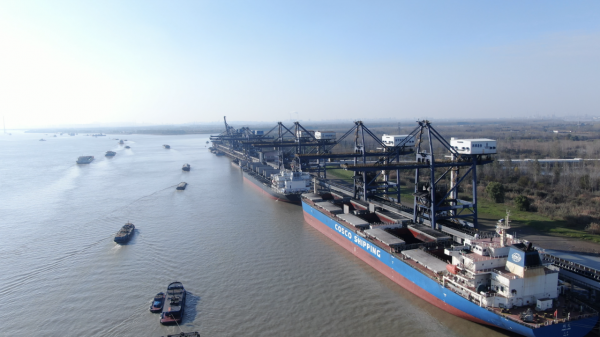 據(jù)了解,南京西壩碼頭位于長(zhǎng)江北岸國(guó)家級(jí)重點(diǎn)化工基地——南京化學(xué)工業(yè)園區(qū)內(nèi),是南京市江北地區(qū)唯一的5萬(wàn)噸級(jí)以上散貨碼頭,港區(qū)內(nèi)公、鐵、水路匯集。岸線總長(zhǎng)1330米,擁有1個(gè)5萬(wàn)噸級(jí)、4個(gè)7-10萬(wàn)噸級(jí)散貨泊位,設(shè)計(jì)年接卸能力3000萬(wàn)噸,吞吐能力5000萬(wàn)噸,陸域堆場(chǎng)面積83萬(wàn)平方米,一次性煤炭堆存量可達(dá)300萬(wàn)噸。