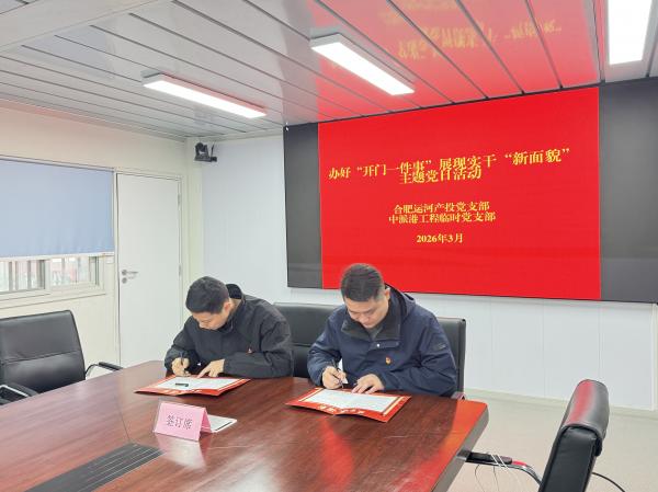 結(jié)合項目年度建設(shè)目標(biāo)任務(wù),合肥運河產(chǎn)投黨支部和中派港工程臨時黨支部負(fù)責(zé)同志現(xiàn)場簽訂《攻堅承諾書》,帶領(lǐng)一線黨員建設(shè)者亮牌踐諾、錨定目標(biāo),營造“爭先進(jìn)位、比學(xué)趕超”的濃厚氛圍,讓黨旗在項目一線高高飄揚。