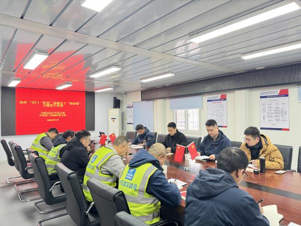 在項目部會議室,合肥運河產(chǎn)投黨支部書記張亮領(lǐng)學(xué)習(xí)近平總書記關(guān)于交通強國的重要論述,通過“第一議題”學(xué)習(xí),引導(dǎo)全體黨員深學(xué)細(xì)悟、篤行實干,切實把思想和行動統(tǒng)一到黨中央決策部署上來,凝聚起通江達(dá)海的強大合力。
